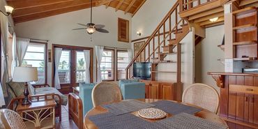 The resort has 12 buildings with two condos on the first floor and two on the second floor. Each first-floor condo has a private room, spacious deck, a large living room with flat flat-screen television, a pull-out couch, and plenty of space to lounge. There is a round dining table that sits 4 and a kitchen area with a refrigerator, stovetop, and sink and each unit is supplied with cooking and eating utensils. The first-floor units have a bathroom with a shower and each room provides a closet, a safe, a dresser, and a large bed. All units have Wifi and are airconditioned.